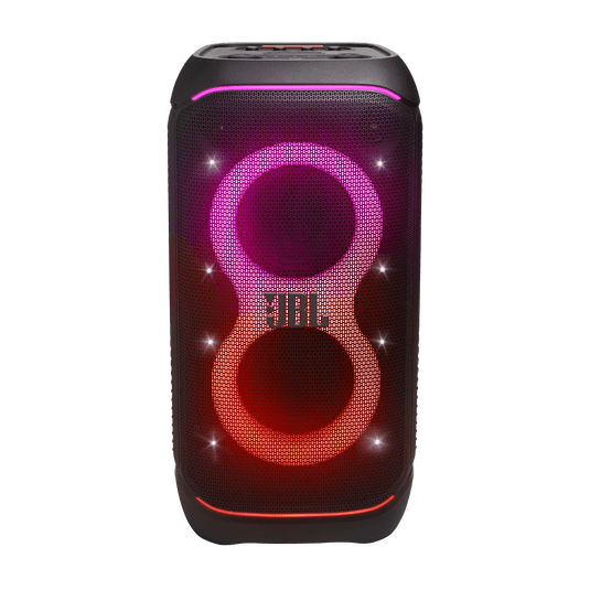 With the JBL PartyBox Stage 320, you can get the party started anytime, anywhere. Transform any space, inside or outdoors, into a dance floor. Powerful JBL Pro Sound and big thumping bass fill a wide soundstage and get the crowd moving, while their eyes are delighted by an adaptive lightshow of swirling starry lights, cool light trails, and amazing strobe effects synced to your beat. Use the mic and guitar inputs to show off your stage presence. You can steer the party’s flow throughout the night with fun interactive party effects. The solid telescopic handle and wide, sturdy wheels mean you can roll the JBL PartyBox Stage 320 just about anywhere, and once you’re there, the splash-proof construction means a little rain won’t ruin the fun. Best of all, it delivers up to 18 hours of playtime—and if the good times are still rolling, just swap out the replaceable battery and keep going. For an even bigger party, it’s easy to connect or use the JBL PartyBox app to connect multiple JBL Auracast-enabled speakers wirelessly. Bring people together and elevate the experience with the JBL PartyBox Stage 320.